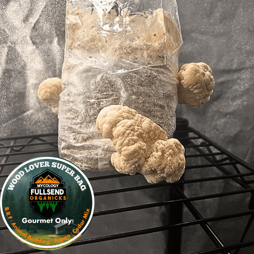 The Wood-Based All-in-One Mushroom Super Grow Bag is a pre-mixed, grain-free kit that includes genetics of your choice, gloves, an alcohol wipe, and full instructions. Fully prepped, sealed, and ready to rock — no break-and-shake required.